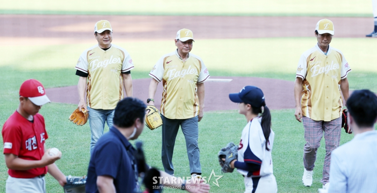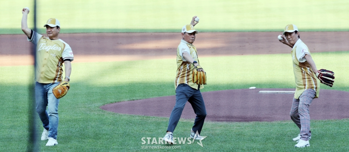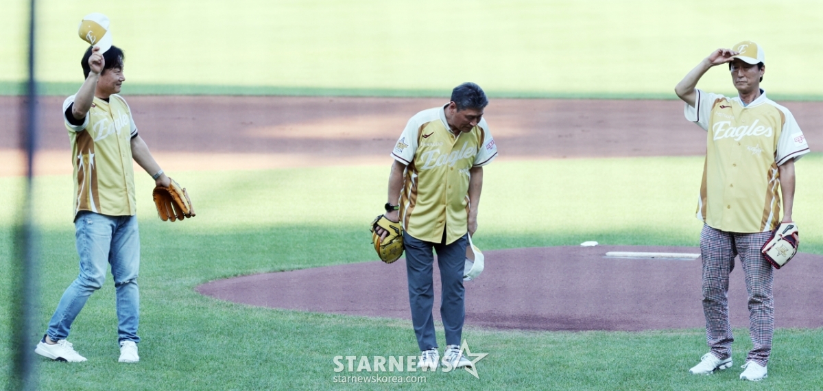 스포츠야구[★한번에쓱]올스타전 시구하는 '한화의 전신 빙그레 창단 멤버 이강돈·한희민·김상국'발행 : 2025.07.12 ・ 19:08대전=강영조 선임기자한화의 전신 빙그레 창단 멤버 이강돈·한희민·김상국 이 12일 대전한화생명볼파크에서 열린 2025KBO리그 올스타게임에 앞서 시구를 하고 있다. 2025.07.12.<저작권자 © 스타뉴스, 무단전재 및 재배포 금지>이강돈한희민김상국한화올스타시구추천 기사강영조 선임기자기자홈좋아요 스포츠-야구의 인기 급상승 뉴스스포츠-야구의 최신 뉴스
