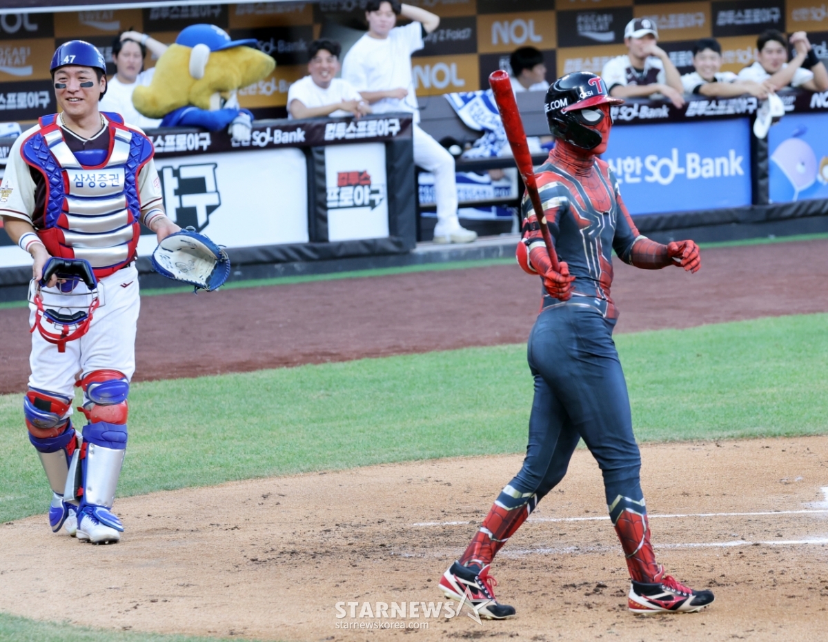 스포츠야구[한번에쓱]'난이도 최상 스파이더맨 변신' 박해민발행 : 2025.07.12 ・ 20:05대전=강영조 선임기자나눔올스타 박해민이 12일 대전한화생명볼파크에서 열린 2025KBO리그 올스타게임에서 자신의 별명처럼 스파이더맨 분장으로 등장해 확실한 눈도장을 찍고 있다. 2025.07.12.<저작권자 © 스타뉴스, 무단전재 및 재배포 금지>브리핑요약 없이도 가볍게 읽으실 수 있는 짧은 뉴스입니다.추천 기사강영조 선임기자기자홈좋아요스포츠-야구의 인기 급상승 뉴스스포츠-야구의 최신 뉴스