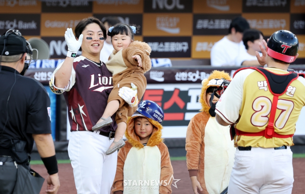 스포츠야구[한번에쓱]'미래 사자들 대령이오!' 류지혁발행 : 2025.07.12 ・ 20:45대전=강영조 선임기자드류림올스타 지혁이 12일 대전한화생명볼파크에서 열린 2025KBO리그 올스타게임에서 아들과 함께 사자 퍼포먼스를 펼치고 있다. 2025.07.12.<저작권자 © 스타뉴스, 무단전재 및 재배포 금지>류지혁사자드류지혁대전볼파크추천 기사강영조 선임기자기자홈좋아요 스포츠-야구의 인기 급상승 뉴스스포츠-야구의 최신 뉴스