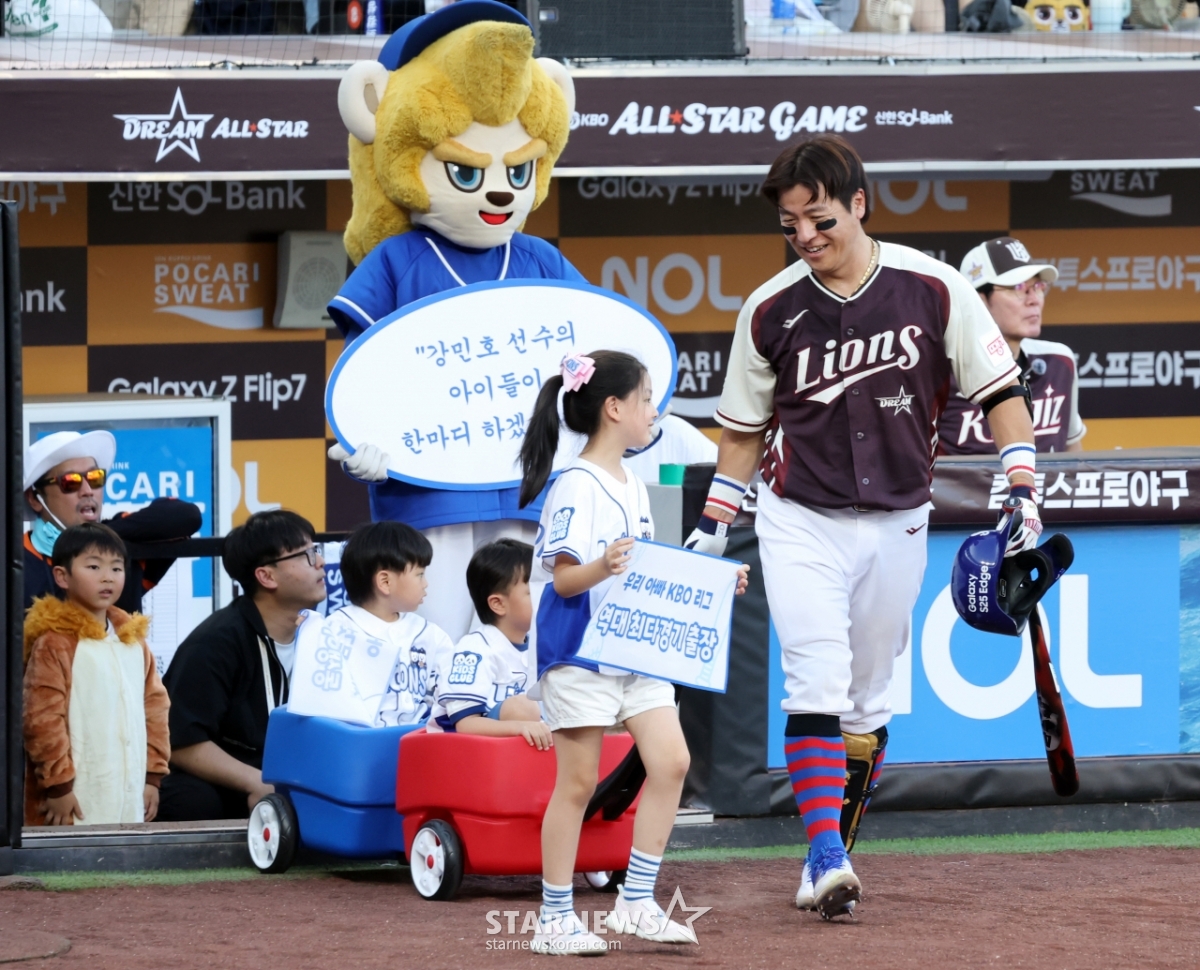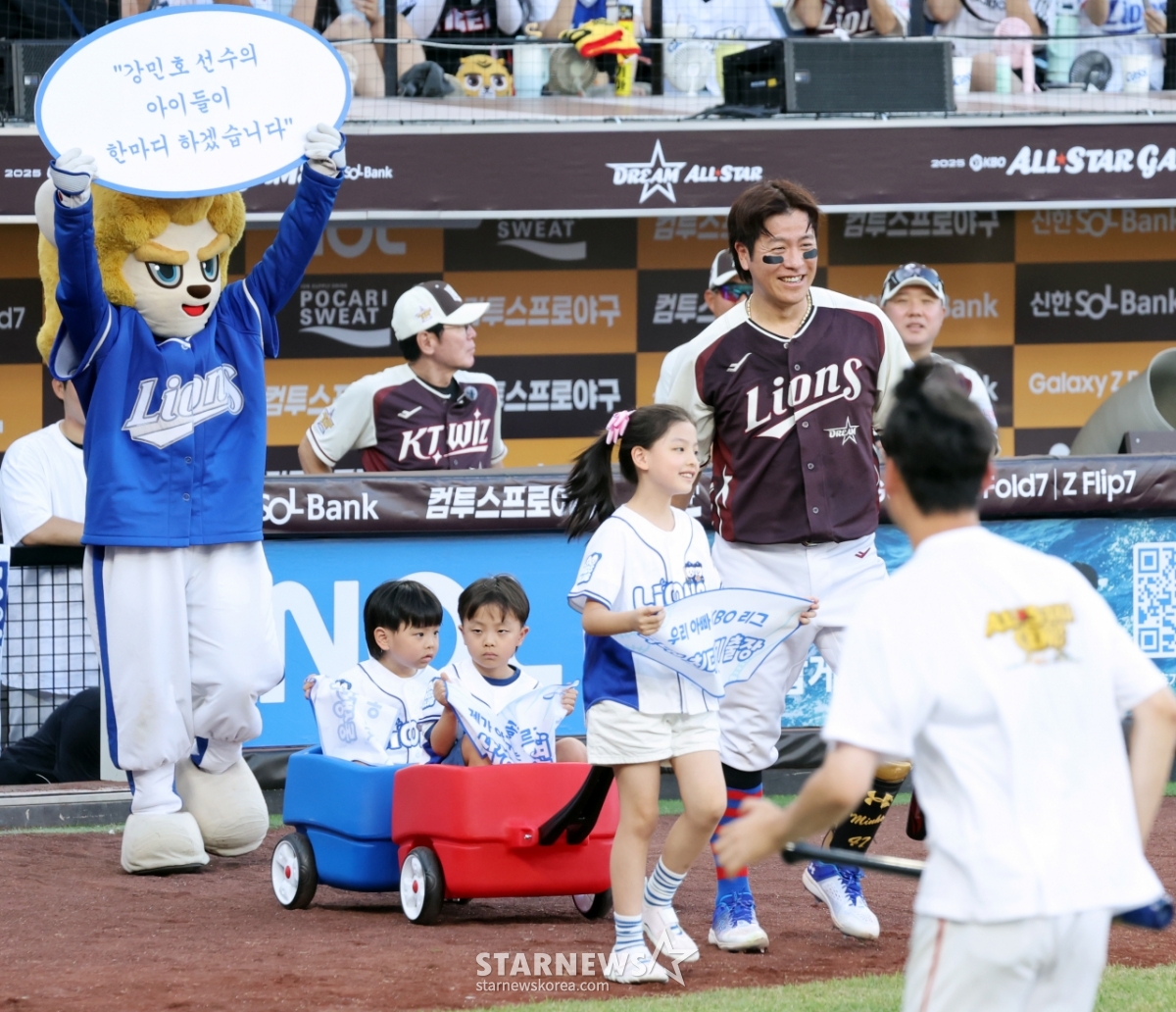 스포츠야구[포토]'아빠 자랑 좀 할게요'발행 : 2025.07.12 ・ 20:49대전=강영조 선임기자드림올스타 강민호가 12일 대전한화생명볼파크에서 열린 2025KBO리그 올스타게임에서 세자녀와 함께 퍼포먼스를 펼치고 있다. 2025.07.12.드림올스타 강민호가 12일 대전한화생명볼파크에서 열린 2025KBO리그 올스타게임에서 세자녀와 함께 퍼포먼스를 펼치고 있다. 2025.07.12.<저작권자 © 스타뉴스, 무단전재 및 재배포 금지>강민호대전볼파크포토아빠자랑추천 기사강영조 선임기자기자홈좋아요 스포츠-야구의 인기 급상승 뉴스스포츠-야구의 최신 뉴스