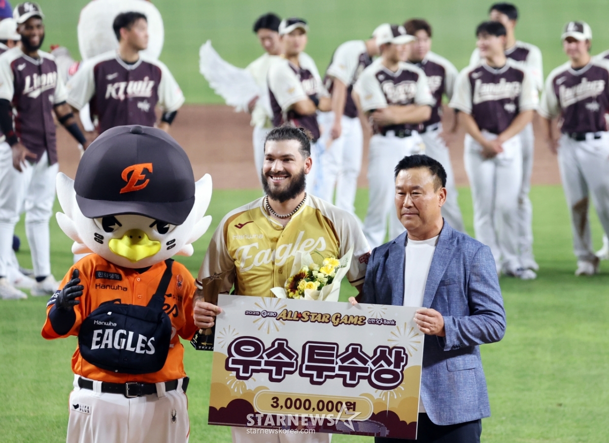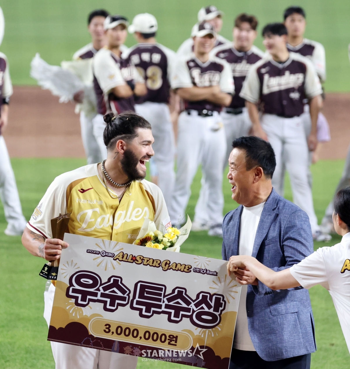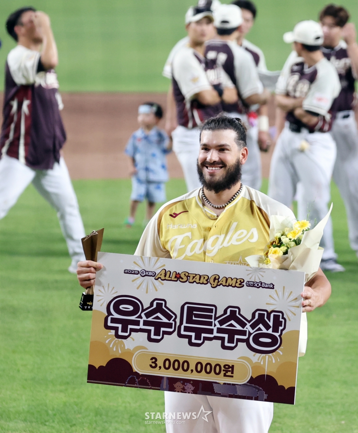 스포츠야구[포토]'우수투수상' 나눔올스타 폰세발행 : 2025.07.12 ・ 22:38대전=강영조 선임기자나눔올스타 폰세가 12일 대전한화생명볼파크에서 열린 2025KBO리그 올스타게임에서 활약하며 장종훈 총재특보로부터 우수투수상을 수상하고 있다. 2025.07.12.<저작권자 © 스타뉴스, 무단전재 및 재배포 금지>폰세올스타우수대전볼파크장종훈추천 기사강영조 선임기자기자홈좋아요 스포츠-야구의 인기 급상승 뉴스스포츠-야구의 최신 뉴스