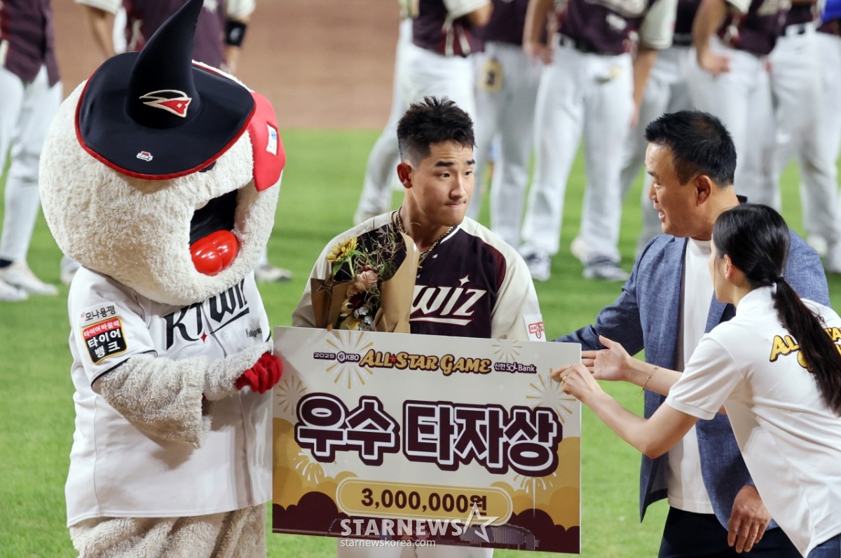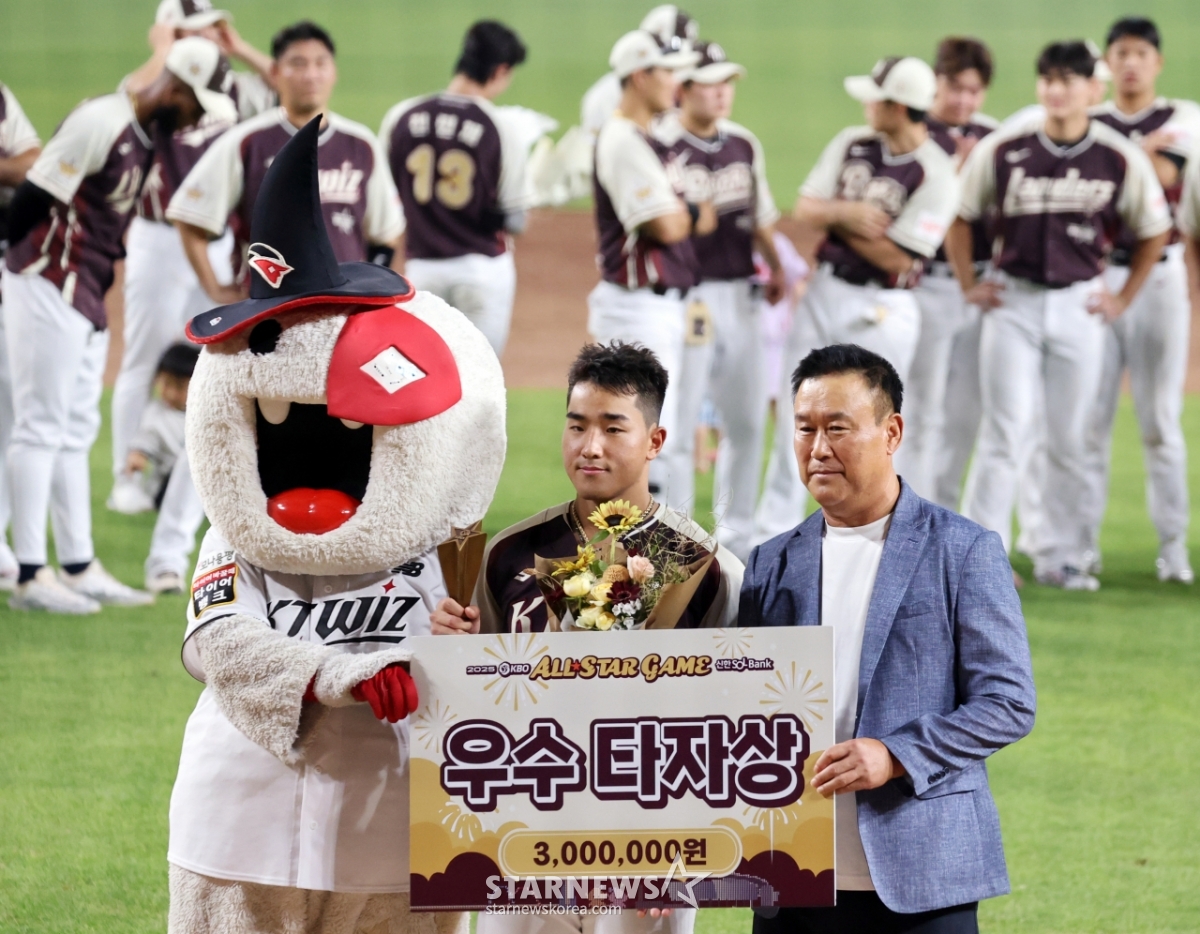 스포츠야구[포토]'우수타자상' 드림올스타 안현민발행 : 2025.07.12 ・ 22:40수정 : 2025.07.13 ・ 14:06대전=강영조 선임기자드림올스타 안현민이 12일 대전한화생명볼파크에서 열린 2025KBO리그 올스타게임에서 활약하며 장종훈 총재특보로부터 우수타자상을 수상하고 있다. 2025.07.12.<저작권자 © 스타뉴스, 무단전재 및 재배포 금지>안현민올스타우수타자대전볼파크추천 기사강영조 선임기자기자홈좋아요 스포츠-야구의 인기 급상승 뉴스스포츠-야구의 최신 뉴스