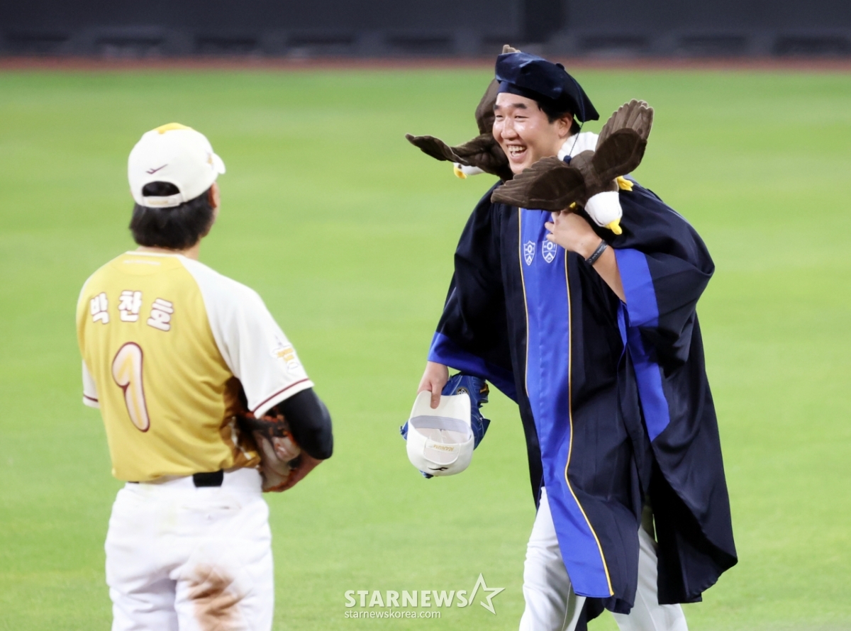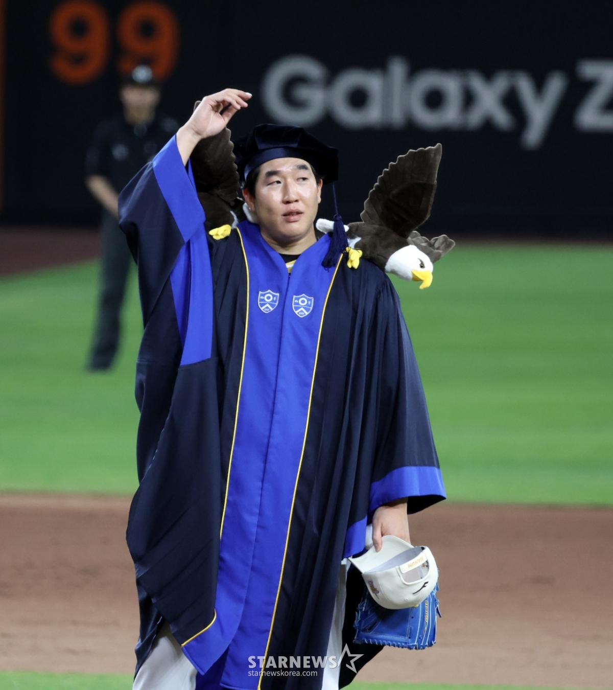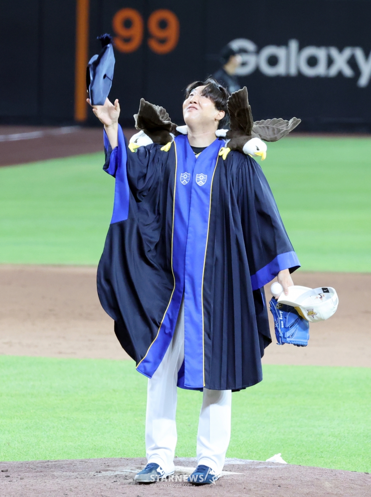 스포츠야구[★화보]'연세대 학사출신' 박상원, 자랑 좀할게요!발행 : 2025.07.12 ・ 23:11대전=강영조 선임기자나눔올스타 박상원이 12일 대전한화생명볼파크에서 열린 2025KBO리그 올스타게임에서 두마리 독수리를 어깨어 올린 연세대 졸업식 가운을 입고 마운드로 향하고 있다. 2025.07.12.<저작권자 © 스타뉴스, 무단전재 및 재배포 금지>연세대박상원대전볼파크화보학사추천 기사강영조 선임기자기자홈좋아요 스포츠-야구의 인기 급상승 뉴스스포츠-야구의 최신 뉴스
