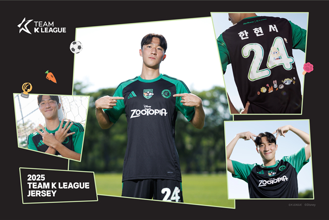 14일 한국프로축구연맹에 따르면 '2025 쿠팡플레이 시리즈'를 위해 특별 제작한 이번 유니폼 상의 전면에는 팀 K리그 엠블럼과 함께 주토피아의 대표 캐릭터 '닉'과 '주디'를 적용했으며, 상의 후면과 하의 배번은 '닉', '주디', '클로하우저', '보고', '플래시' 등 주토피아의 다양한 캐릭터들을 테마로 디자인했다. 또한, 상의 상단에는 주토피아와 K리그의 공동 로고를 새겨 특별한 의미를 더했다.