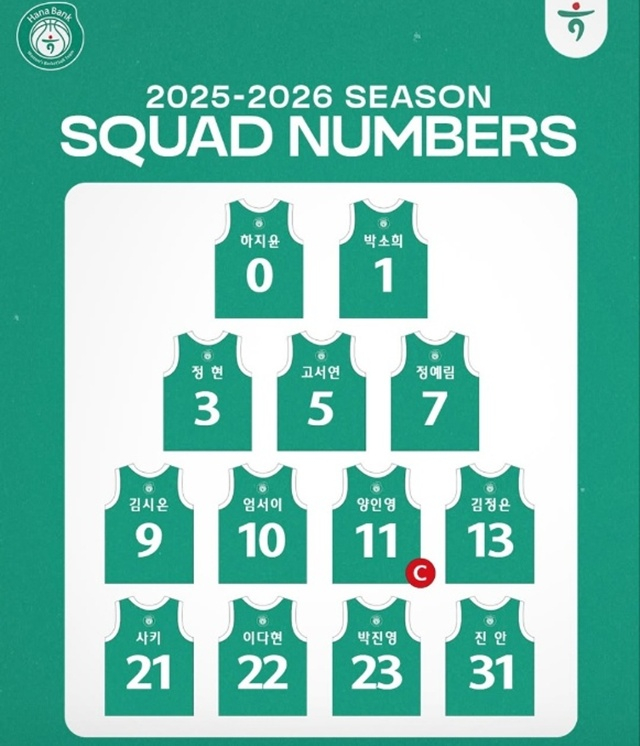 이상범 감독의 하나은행은 14일 구단 SNS를 통해 2025~2026시즌 등번호를 발표했다.