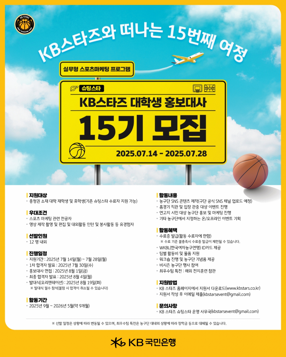 KB스타즈, 대학생 홍보대사 슈팅스타 15기 모집
