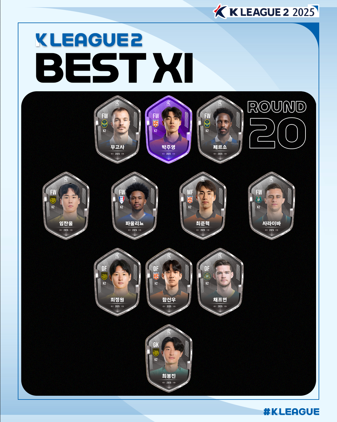 한국프로축구연맹은 15일 보도자료를 통해 K리그2 20라운드 MVP와 베스트 11을 공개했다.