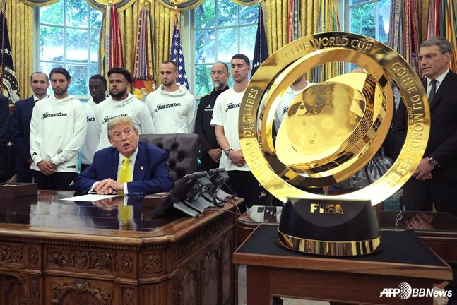 트럼프 대통령은 클럽월드컵 중계 방송사 'DAZN'과 인터뷰에서 "FIFA가 지난 3월 클럽월드컵 우승 트로피를 보관할 수 있냐고 물었다. 그 트로피는 대통령 집무실에 있다"며 "'언제 트로피를 가져갈 것인가'라고 물으니 '절대 가져가지 않을 것'이라고 답했다. 그들은 새 트로피를 만든다고 하더라"라고 밝혔다.