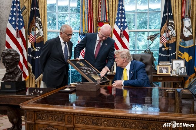 앞서 트럼프 대통령은 지안니 인판티노 FIFA 회장과 미국에서 열린 클럽월드컵 결승 현장을 찾았다. 경기가 끝난 뒤 트럼프 대통령은 인판티노 회장과 함께 선수들에게 메달을 수여하기도 했다.