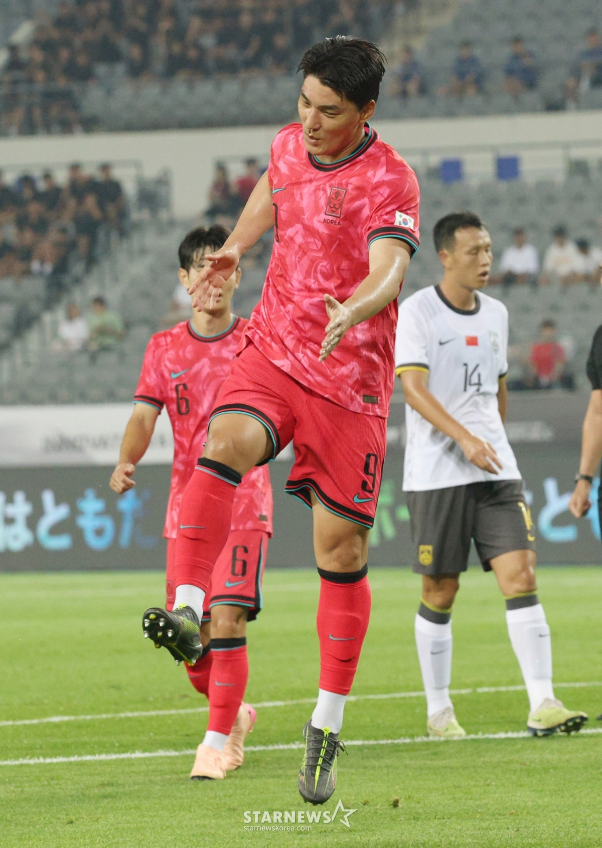 한국은 주민규(대전하나시티즌)를 중심으로 나상호(마치다 젤비아)와 이동경(김천 상무)이 양 측면에 서는 3-4-3 전형을 가동한다.