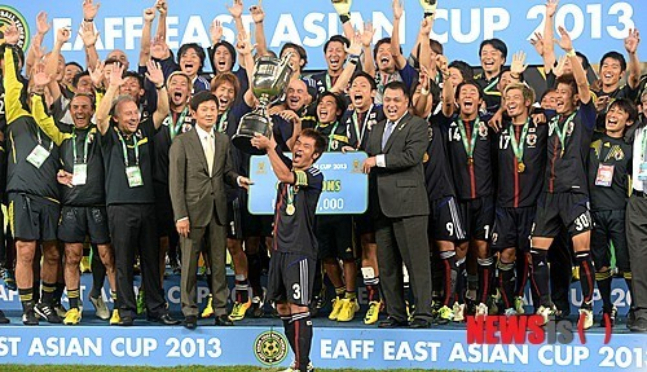 일본 축구 국가대표팀의 동아시아축구연맹(EAFF) E-1 풋볼 챔피언십(동아시안컵) 우승 세리머니가 또 한국에서 펼쳐졌다. 모리야스 하지메 감독을 비롯해 대표팀 선수들이 신나게 우승 트로피를 들어 올렸다. 일본이 한국에서 동아시안컵 우승 세리머니를 한 건 12년 만이자 역대 두 번째다. 공교롭게도 두 번 모두 사령탑은 홍명보 감독이었다.