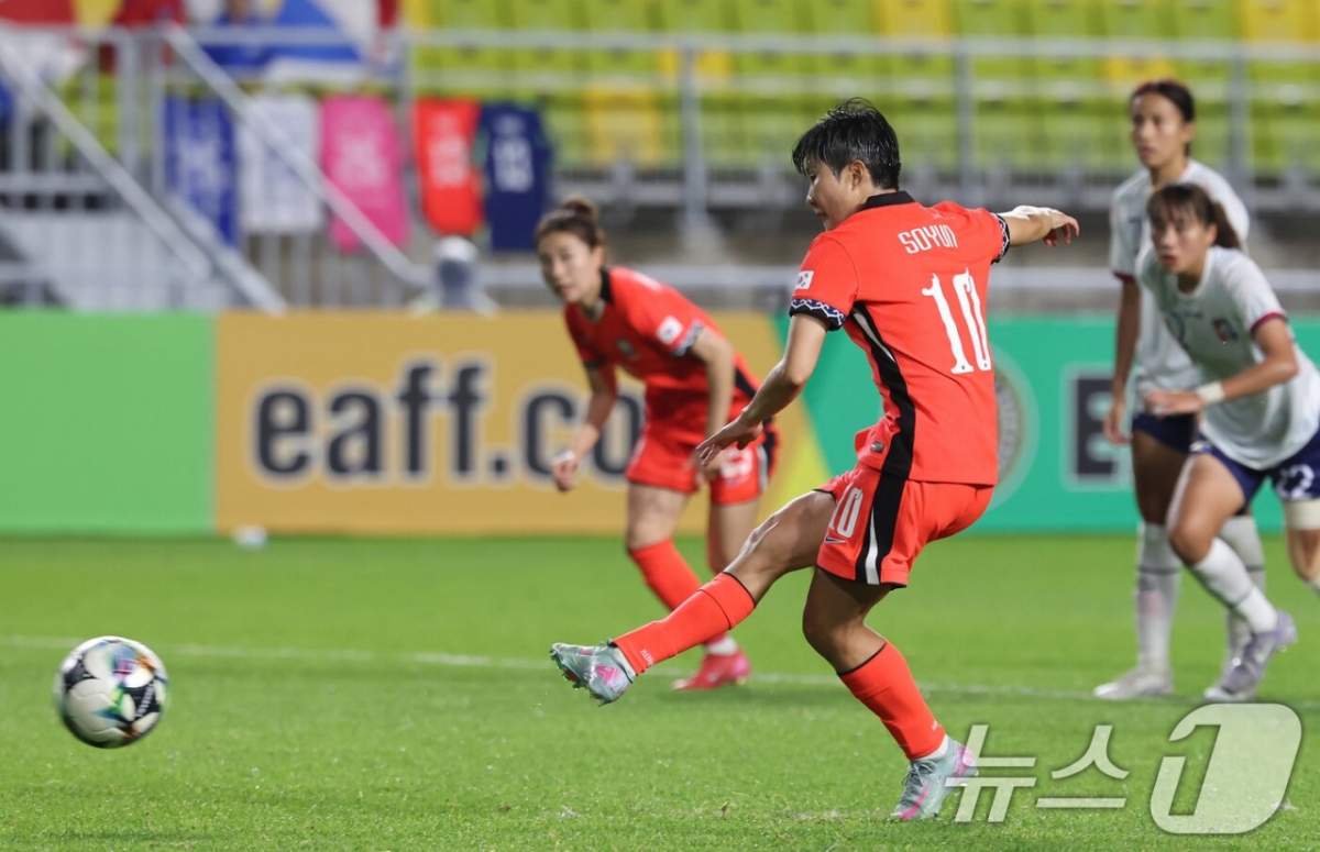 쐐기골까지 작렬했다. 40분 장슬기가 문전으로 침투하며 왼발 슈팅으로 감각적으로 돌려놓은 공이 골문 상단에 꽂혔다. 대만 수비는 순간 페널티 박스 안으로 돌아 뛰는 장슬기의 움직임을 완전히 놓쳤다.