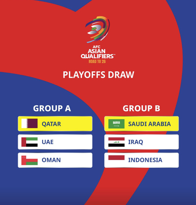 3차 예선 각 조 3~4위 팀이 이름을 올린 가운데 4차 예선에선 3팀씩 두 개 조로 나뉘어 경쟁한다. A조는 카타르, 아랍에미리트(UAE), 오만, B조는 사우디아라비아, 이라크, 인도네시아가 함께 묶였다.