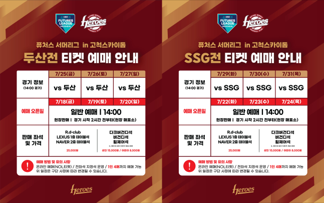 키움히어로즈, '고척서 개최' 퓨처스리그 서머리그 입장권 판매