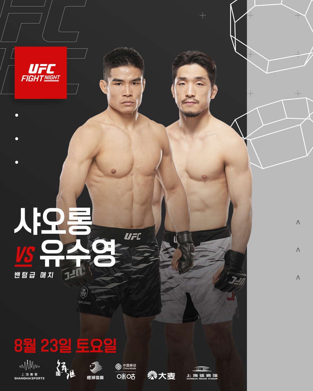 ROAD TO UFC 시즌 2 밴텀급(61.2kg) 우승자 유수영은 오는 8월 23일(한국시간) 중국 상하이시 상하이 체육관에서 열리는 'UFC 파이트 나이트: 워커 vs 장밍양' 대회에서 ROAD TO UFC 시즌 2 밴텀급 준우승자 샤오롱(27∙중국)과 맞붙는다. 지난 2월 AJ 커닝햄전 승리에 이은 UFC 정식 계약 후 두 번째 경기다.
