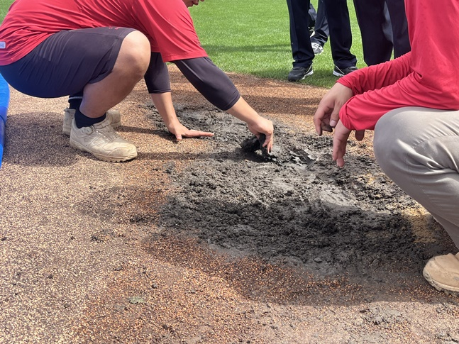 이렇듯 이미 그라운드 상황이 좋지 않은데, 만약 조금이라도 비가 내린다면 경기를 하더라도 작업시간이 길어질 가능성이 높았다. 결국 경기 시작 2시간 여 앞두고 취소가 결정됐다.