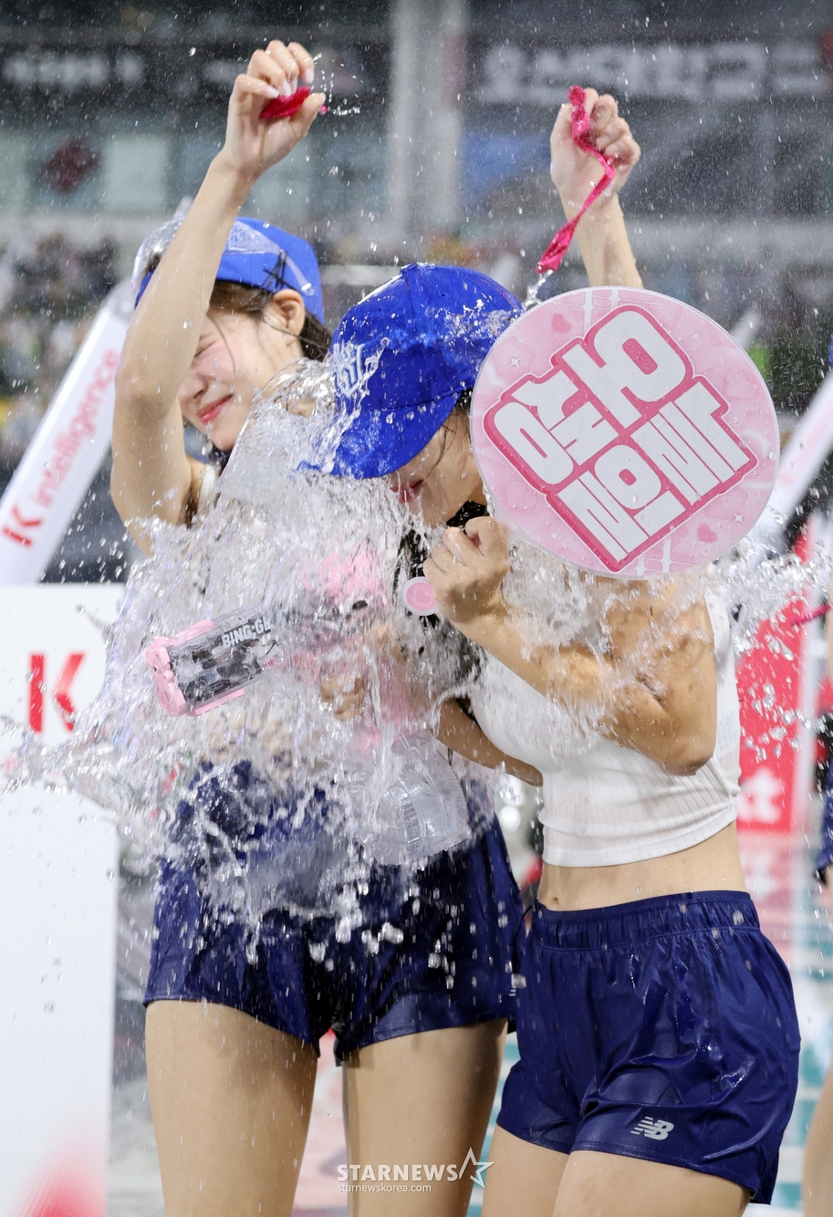 스포츠야구[포토]물폭탄 맞은 김진아발행 : 2025.07.19 ・ 20:50수원=강영조 선임기자생일을 맞은 KT 김진아와 응원단장 김주일, 신세희 등 치어리더들이 19일 수원KT위즈파크에서 열리는 2025KBO리그 한화이글스와 KT위즈 경기에서 첫 kt위즈파크 워터페스티벌'을 벌이며 더위를 잊게 만들고 있다. 2025.07.19.<저작권자 © 스타뉴스, 무단전재 및 재배포 금지>김진아위즈김주일신세희수원한화이글스추천 기사강영조 선임기자기자홈좋아요 스포츠-야구의 인기 급상승 뉴스스포츠-야구의 최신 뉴스