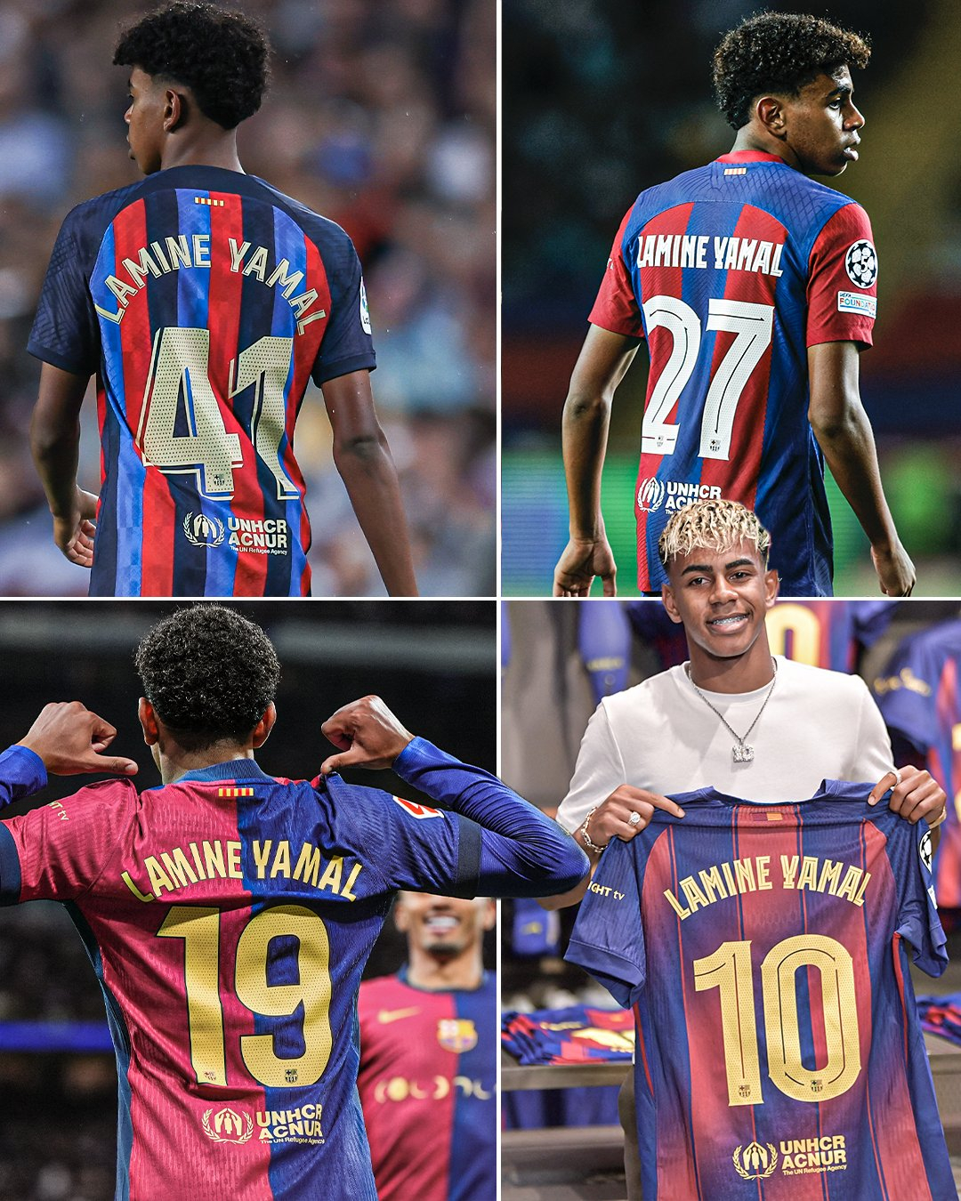 2024~2025시즌 라민 야말은 라리가 35경기 9골 등 공식전 55경기에 18골의 맹활약을 펼쳤다. 엄청난 재능 덕분에 그는 18번째 생일을 맞은 지난 13일 2031년 6월 30일까지 구단과 계약을 연장했고, 이 과정에서 세계적인 스타 선배들이 달았던 등번호 10번의 새 주인이 됐다. 역대 바르셀로나에서 등번호 10번을 단 선수들은 고(故) 디에고 마라도나와 호마리우, 히바우두, 호나우지뉴, 메시 등이었다. 라민 야말은 1군 데뷔 당시 41번을 달았고, 이후 27번과 19번을 거쳐 18세의 나이에 구단 역사상 가장 상징적인 번호를 품었다.