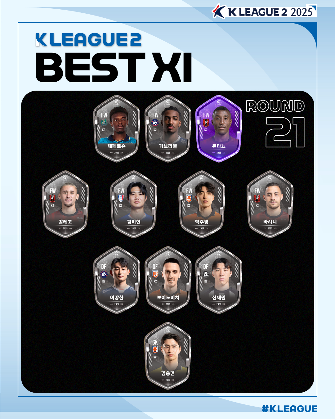 [ 하나은행 K리그2 2025 21R MVP, 베스트 팀/매치, 베스트11 ]