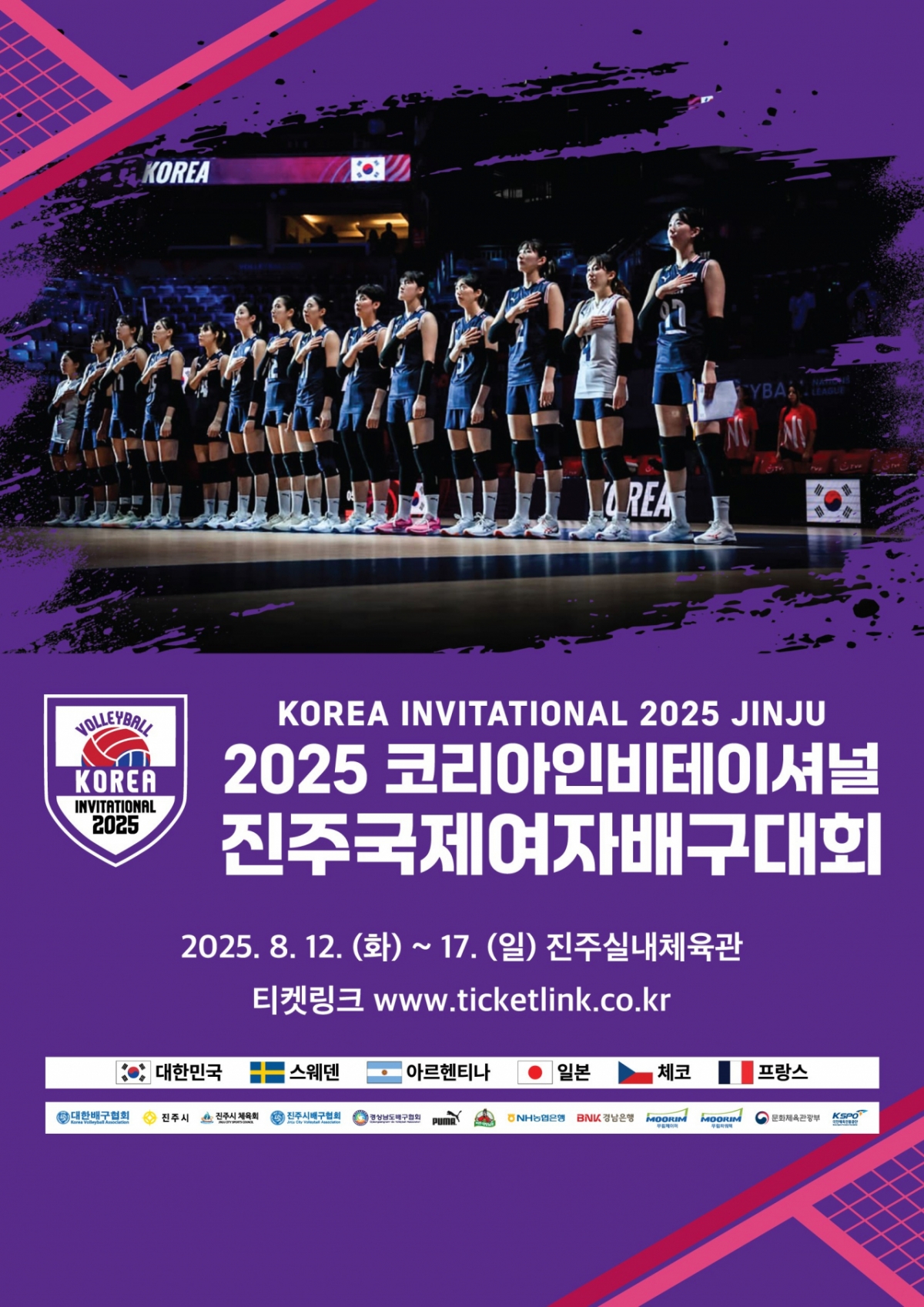 오는 8월 12일부터 17일까지 경상남도 진주시에서 개최되는 2025 코리아인비테이셔널 진주 국제여자배구대회 티켓 예매가 23일부터 시작된다.