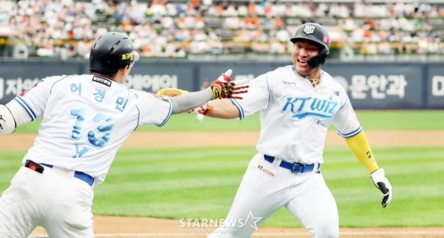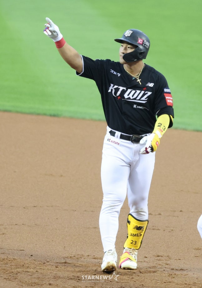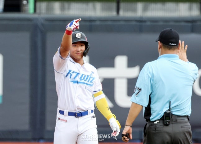 하지만 안현민은 한없이 침착했다. 1회초 2사에서 라일리의 슬라이더와 직구를 지켜본 안현민은 공 2개를 걷어내더니 하단으로 오는 직구와 커브를 모두 골라내고 볼넷으로 출루했다. 이정훈의 우전 안타 때 빠른 발로 3루까지 진루했으나, 강백호의 땅볼로 홈에는 들어오지 못했다.