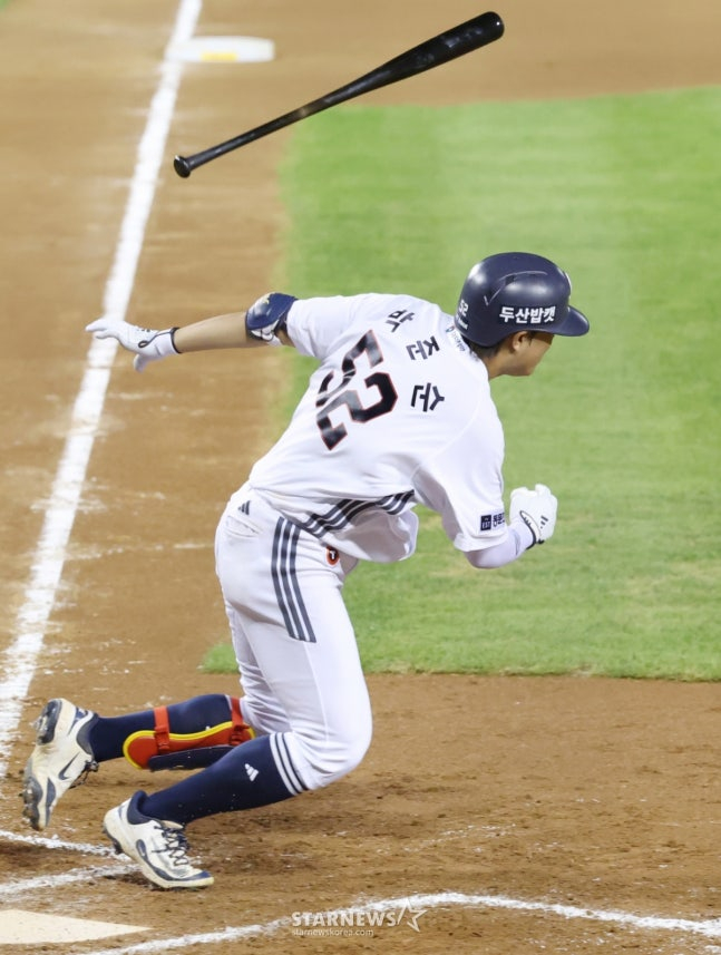 첫 타석을 홈런으로 시작한 박준순은 4회말 선두타자로 나서 한화 2번째 투수 엄상백을 상대로 좌중간을 가르는 3루타를 치며 2번째 장타를 신고했다. 양석환의 적시타로 득점을 추가한 박준순은 5회말에도 좌익수 방면 2루타를 추가했다. 23일 경기서만 3번째 장타를 신고한 것이다.