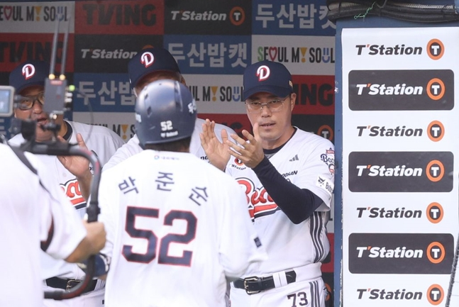 그러면서 최근 두산 야구를 점수로 매겨달라는 취재진의 요청에 "제가 대행을 하고 있는 점수는 아니고, 선수들이 하는 야구만 볼 때 90점이다. 활기가 담겨있고, 끈기가 묻어나고, 재밌는 야구를 하고 있다고 생각하기에 나름 잘하고 있다고 보고 있다"고 말했다.