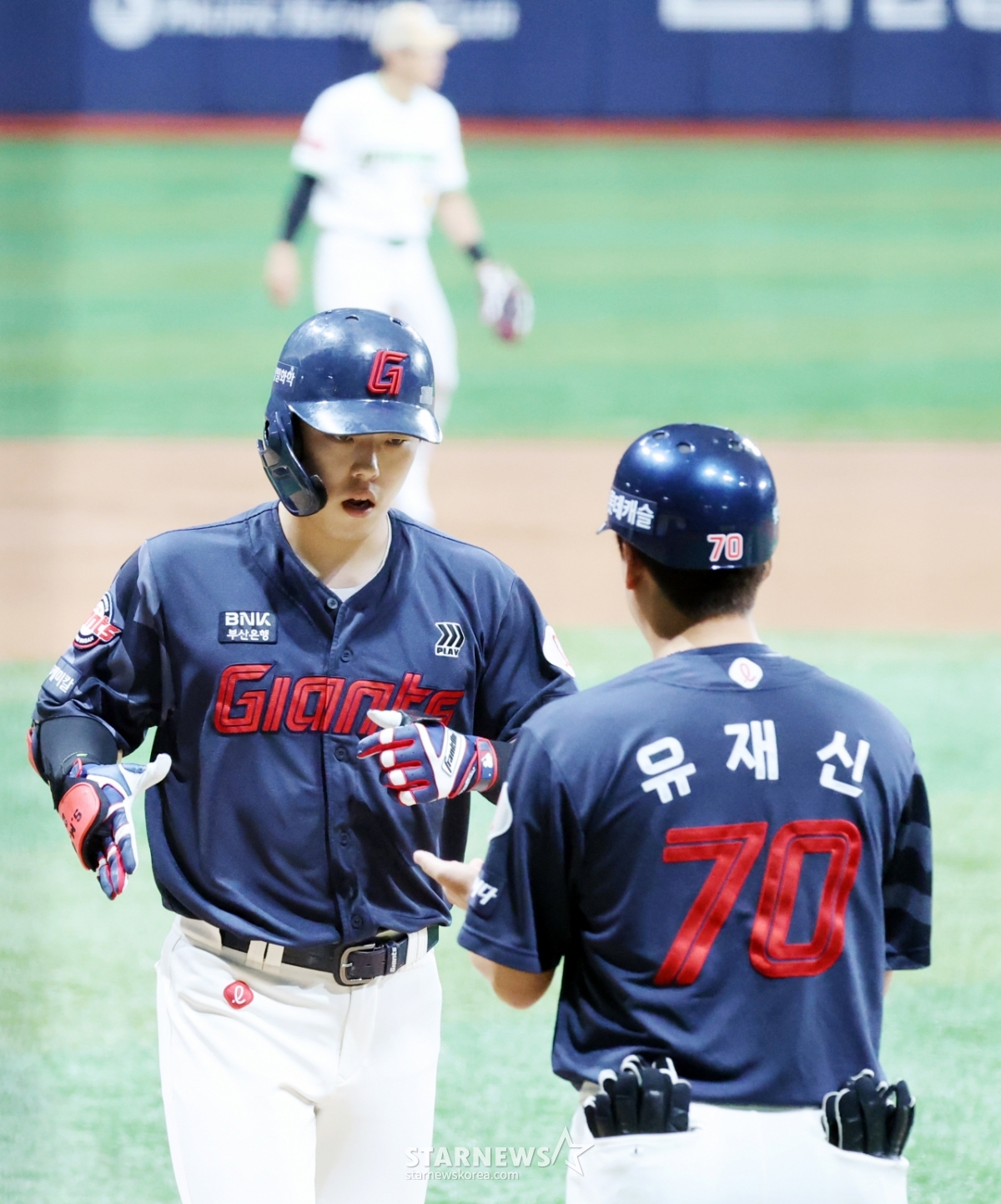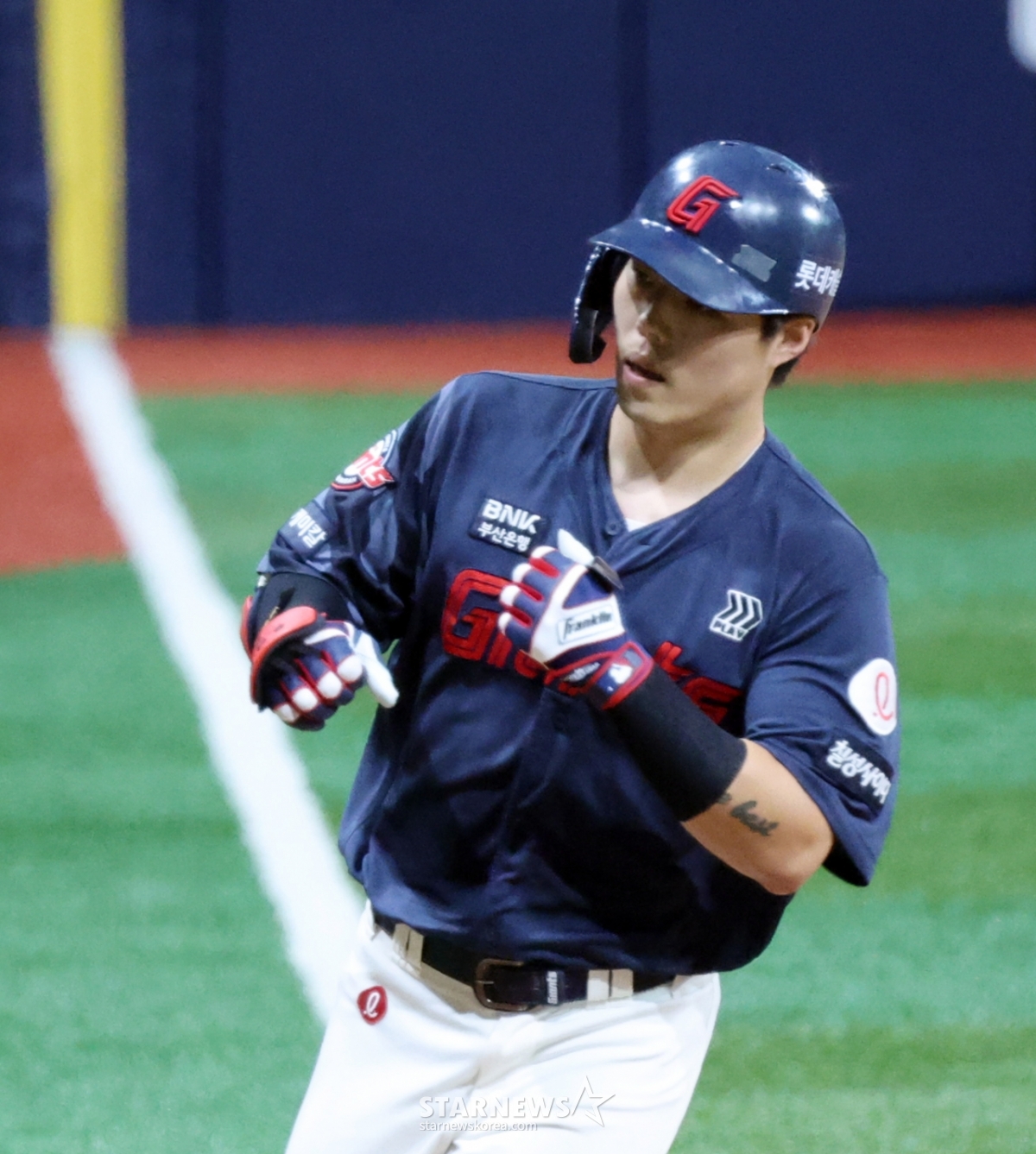 스포츠야구[한번에쓱]'1회초 기선제압 솔로홈런' 고승민발행 : 2025.07.24 ・ 19:21고척=강영조 선임기자롯데 2번타자 고승민이 24일 고척스카이돔에서 열리는 2025 KBO리그 롯데자이언츠와 키움히어로즈의 경기 1회초 1사 후 정현우를 상대로 좌월1점홈런을 터트린 후 홈인하고 있다. 2025.07.24.<저작권자 © 스타뉴스, 무단전재 및 재배포 금지>롯데홈런고승고척스카이자이언츠추천 기사강영조 선임기자기자홈좋아요 스포츠-야구의 인기 급상승 뉴스스포츠-야구의 최신 뉴스