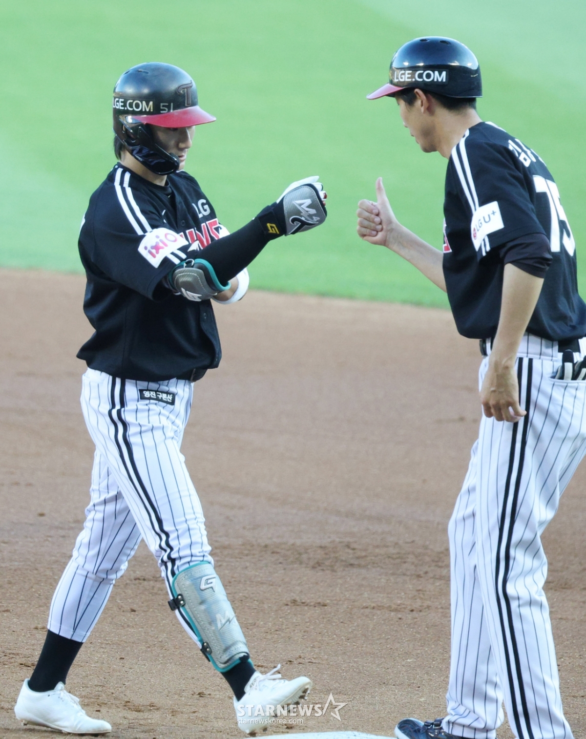 스포츠야구[포토] 신민재 '초전박살 콘셉트'발행 : 2025.07.27 ・ 18:47잠실=김진경 대기자2025 신한 SOL Bank KBO리그 두산 베어스 대 LG 트윈스 경기가 27일 서울 잠실야구장에서 열렸다.LG 신민재가 3회초 무사 3루에서 선제 1타점 적시타를 날리고 출루한 후 김용의 코치의 환영을 받고 있다.<저작권자 © 스타뉴스, 무단전재 및 재배포 금지>시구승요승리요정김택연최승용조성환_김독추천 기사김진경 대기자기자홈좋아요 스포츠-야구의 인기 급상승 뉴스스포츠-야구의 최신 뉴스