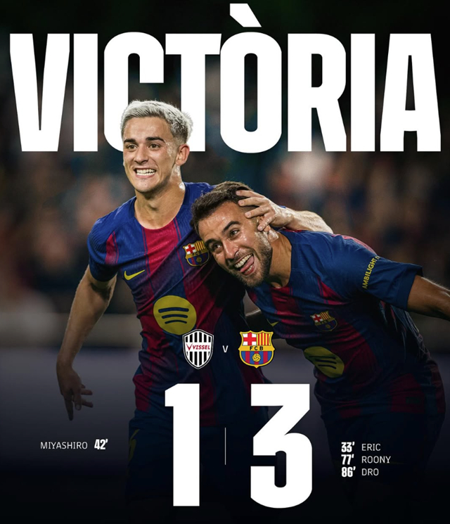바르셀로나는 27일 일본 고베에 위치한 노에비아 스타디움 고베에서 열린 2025 아시아투어 에디션에서 일본 J리그1 선두 비셀 고베와 프리시즌 친선경기에서 3-1로 이겼다.