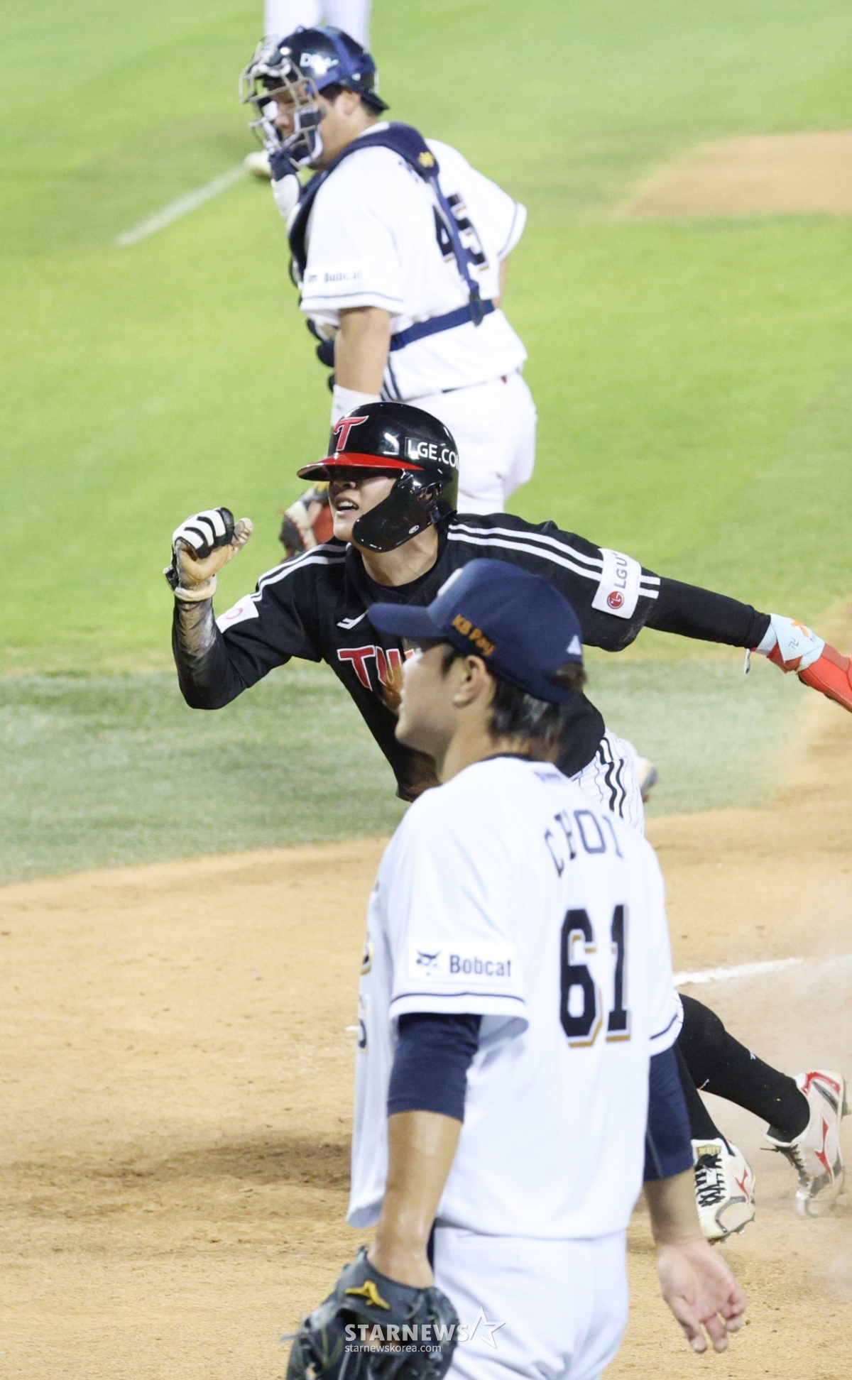 스포츠야구[포토] 최원영 '대주자 미션 클리어'발행 : 2025.07.27 ・ 20:45잠실=김진경 대기자2025 신한 SOL Bank KBO리그 두산 베어스 대 LG 트윈스 경기가 27일 서울 잠실야구장에서 열렸다.LG 7회초 1사 3루에서 3루 대주자 최원영이 신민재의 희생 플라아 때 홈으로 뛰어 동점 득점을 하고 있다.<저작권자 © 스타뉴스, 무단전재 및 재배포 금지>시구승요승리요정김택연최승용조성환_김독추천 기사김진경 대기자기자홈좋아요 스포츠-야구의 인기 급상승 뉴스스포츠-야구의 최신 뉴스