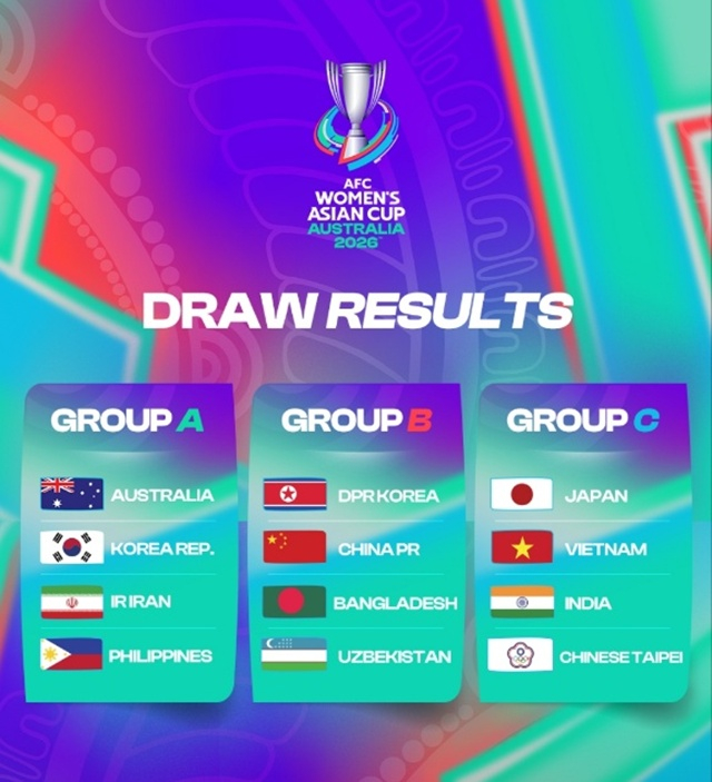 아시아축구연맹(AFC)은 29일(한국시간) 내년 3월 호주에서 열리는 2026 AFC 여자 아시안컵 조 추첨 결과를 발표했다.