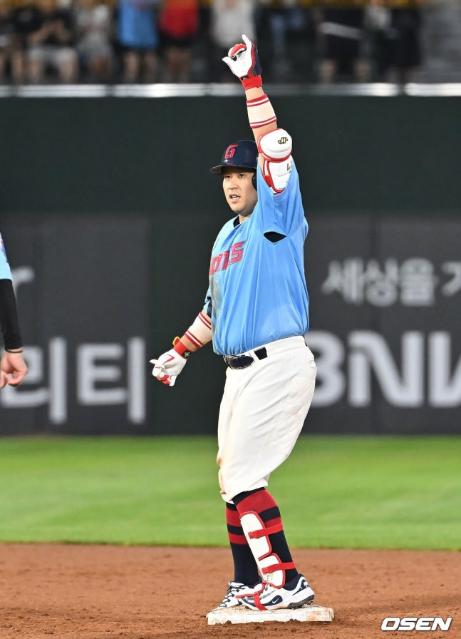 다음 이닝에는 리드를 잡았다. 5회말 1사 후 전준우가 볼넷으로 나간 뒤, 윤동희가 우중간 안타로 2, 3루 기회를 만들었다. 여기서 유강남이 우중간을 완전히 가르는 2루타를 터트리면서 4-2로 경기를 뒤집었다.
