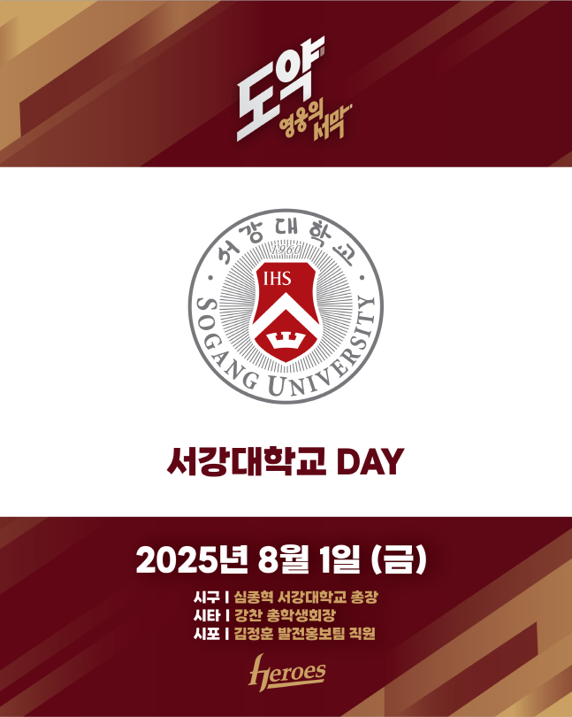 키움히어로즈, 1일 롯데전 '서강대학교데이'... 시구-시타-응원 공연까지 연다
