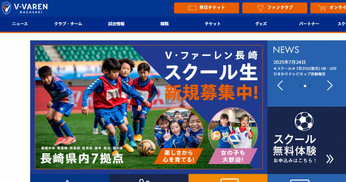 나가사키 공식 홈페이지에 따르면 구단은 18세 이하(U-18)를 비롯해 U-15, U-12, 초등 유치부까지 운영 중이다.