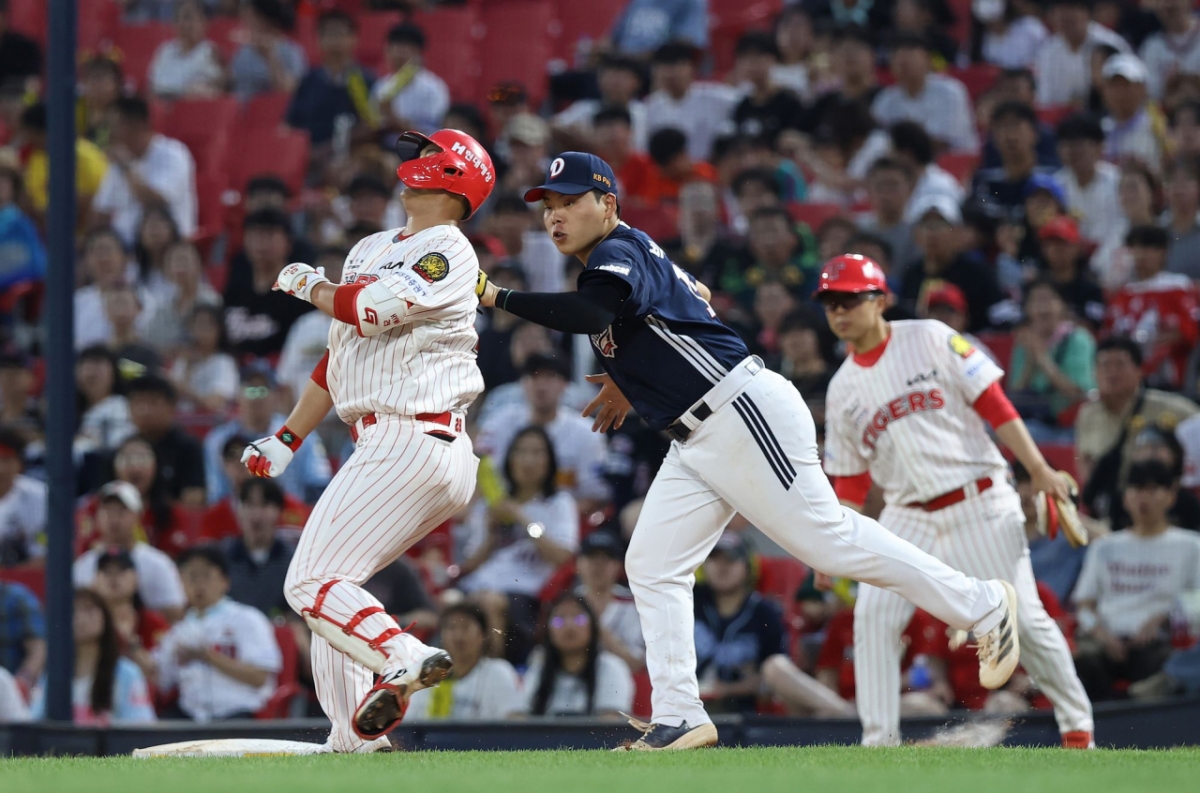 9회말 두산은 마운드에 최원준을 올렸다. 그런 최원준을 상대로 대타 한준수가 볼넷으로 출루했다. 이어 김호령이 희생번트를 시도했다. 투수 앞으로 굴러간 땅볼을 최원준이 잡아 지체없이 2루로 뿌렸다. 비디오 판독 끝에 아웃 판정이 유지됐다. 1사 1루. 다음 타자는 위즈덤. 여기서 이범호 감독은 대타 오선우를 기용하는 승부수를 띄웠다. 그러나 우익수 뜬공에 그쳤다. 2사 1루. 다음 타석을 밟은 박찬호가 볼넷으로 출루하며 2사 1, 2루 기회를 만들었다. 여기서 두산은 투수를 교체했다. 클로저 김택연의 투입. 그런 김택연을 상대로 김규성이 풀카운트 승부 끝에 볼넷을 골라냈다. 절호의 2사 만루 기회. 하지만 최형우가 2루 땅볼로 물러나며 결국 승부는 연장으로 향했다.