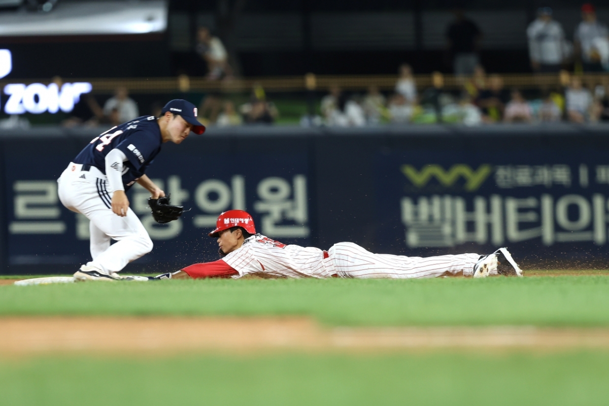 계속해서 두산은 이유찬이 2루 도루를 시도하다가 베이스에서 떨어지며 아웃 판정을 받았다. 그래도 두산은 조수행이 좌중간 안타로 출루하며 다시 득점 기회를 이어 나갔다. 결국 케이브가 우중간 적시 2루타를 터트렸고, 발 빠른 조수행이 3루를 돌아 홈에서 슬라이딩을 시도하며 득점을 기록했다.