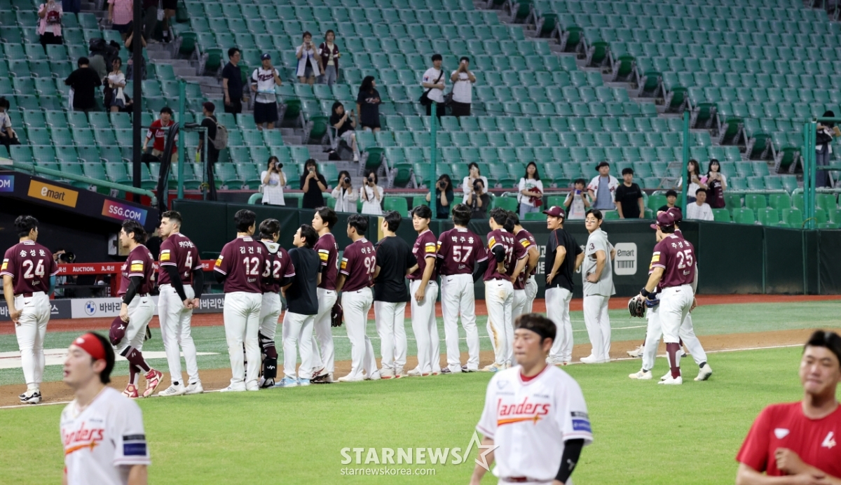 스포츠야구[포토]'연패끊고 싶었는데'발행 : 2025.07.31 ・ 00:20인천=강영조 선임기자키움주장 송성문과 선수들이 30일 인천SSG랜더스필드에서 열린 2025 KBO리그 키움히어로즈와 SSG랜더스 경기에서 5-5 무승부를 기록한 후 응원한 팬들에 인사를 하고 있다. 2025.07.30.<저작권자 © 스타뉴스, 무단전재 및 재배포 금지>랜더스송성문인천히어로즈포토연패추천 기사강영조 선임기자기자홈좋아요 스포츠-야구의 인기 급상승 뉴스스포츠-야구의 최신 뉴스