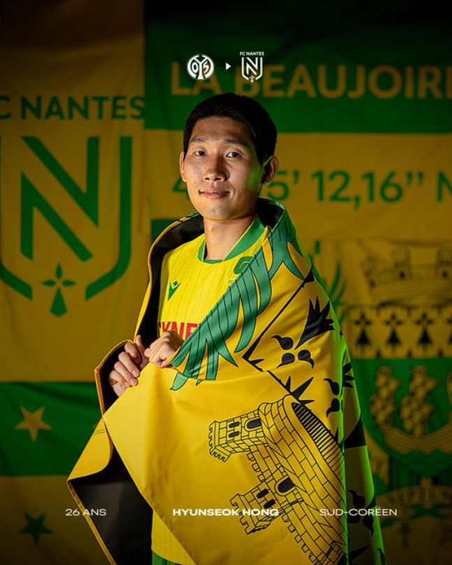낭트 구단은 31일(한국시간) "공격형 미드필더 홍현석을 영입했다. 팀의 공격력을 강화해 줄 선수"라며 홍현석의 영입을 공식 발표했다. 마인츠와 임대 계약을 체결했지만, 완전 이적 옵션도 포함됐다. 등번호는 7번이다.