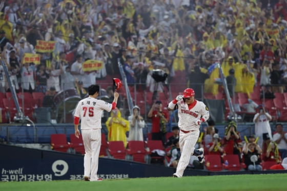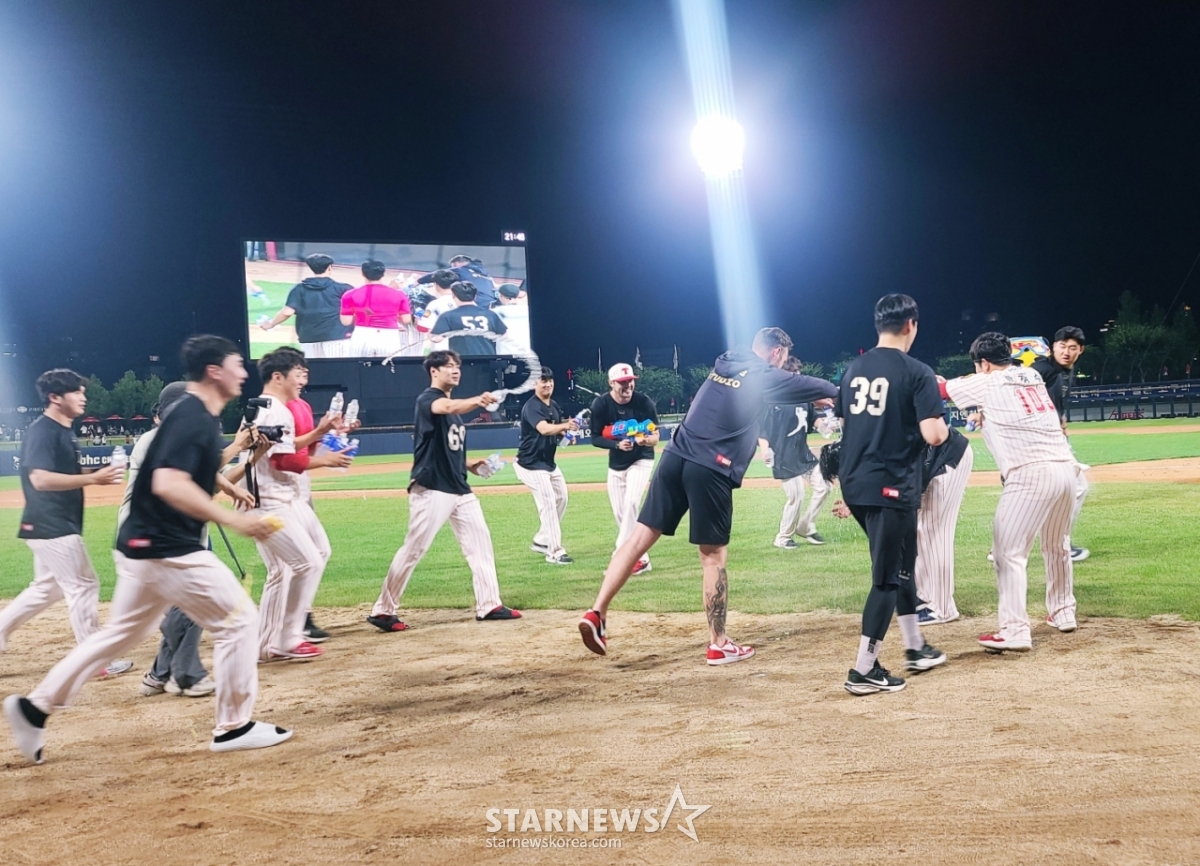이날 KIA 선수들은 경기가 끝난 뒤 서로 포옹을 나누며 큰 기쁨을 나눴다. 특히 변우혁과 김건국 등은 경기 후 더그아웃에서 뜨거운 눈물을 왈칵 쏟기도 했다. 그래도 KIA 선수들은 물을 뿌리며 서로를 축하하는 모습을 보여줬다.