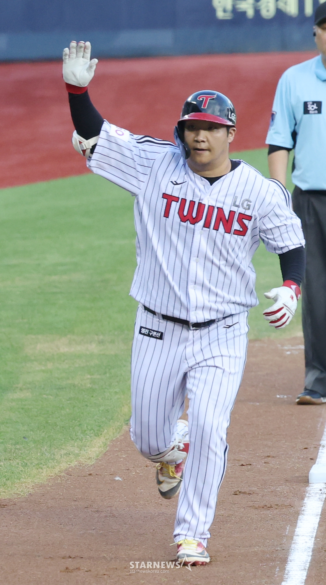 스포츠야구[포토] 문보경, 3연승 축포를 쏘다발행 : 2025.07.31 ・ 19:06잠실=김진경 대기자2025 신한 SOL Bank KBO리그 LG 트윈스 대 kt 위즈 경기가 31일 서울 잠실야구장에서 열렸다.LG 문보경이 2회말 무사에서 KT 선발 헤이수스를 상대로 선제 우월 1점 홈런을 날리고 홈인하고 있다.<저작권자 © 스타뉴스, 무단전재 및 재배포 금지>프로야구KBOLG_트윈스KT_위즈치리노스송승기추천 기사김진경 대기자기자홈좋아요 스포츠-야구의 인기 급상승 뉴스스포츠-야구의 최신 뉴스