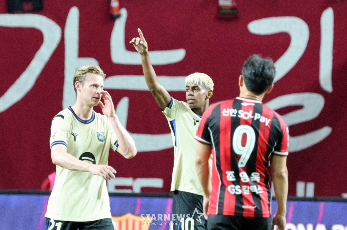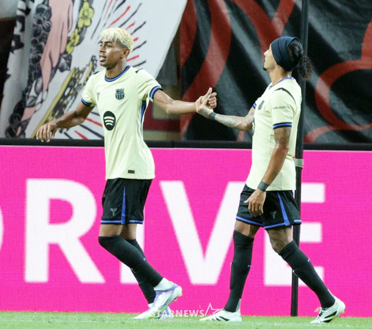 스포츠축구[한번에쓱]'전반 초반 두번째골 성공시킨 라민 야말 '한국팬 환호에 답례'발행 : 2025.07.31 ・ 20:29수정 : 2025.08.01 ・ 12:44상암=강영조 선임기자FC바르셀로나 라민 야말이 31일 서울월드컵경기장에서 열린 '2025 FC바르셀로나 프리시즌 아시아투어' K리그 FC서울과의 친선경기에서 전반 초반 팀 두번째골 을 성공시킨후 자축하고 있다. 2025.07.31.<저작권자 © 스타뉴스, 무단전재 및 재배포 금지>라민야말한국바르셀로나서울전반추천 기사강영조 선임기자기자홈좋아요 스포츠-축구의 인기 급상승 뉴스스포츠-축구의 최신 뉴스