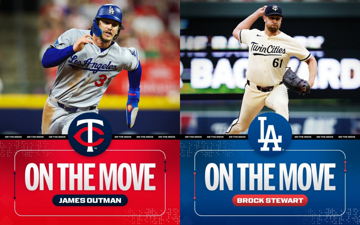 메이저리그 공식 홈페이지 MLB.com은 1일(한국시간) "다저스가 트레이드 마감일(8월 1일 오전 7시)을 앞두고 외야수 아웃맨을 미네소타로 보내고 우완 불펜 브록 스튜어트(34)를 영입하는 트레이드에 합의했다"고 밝혔다.