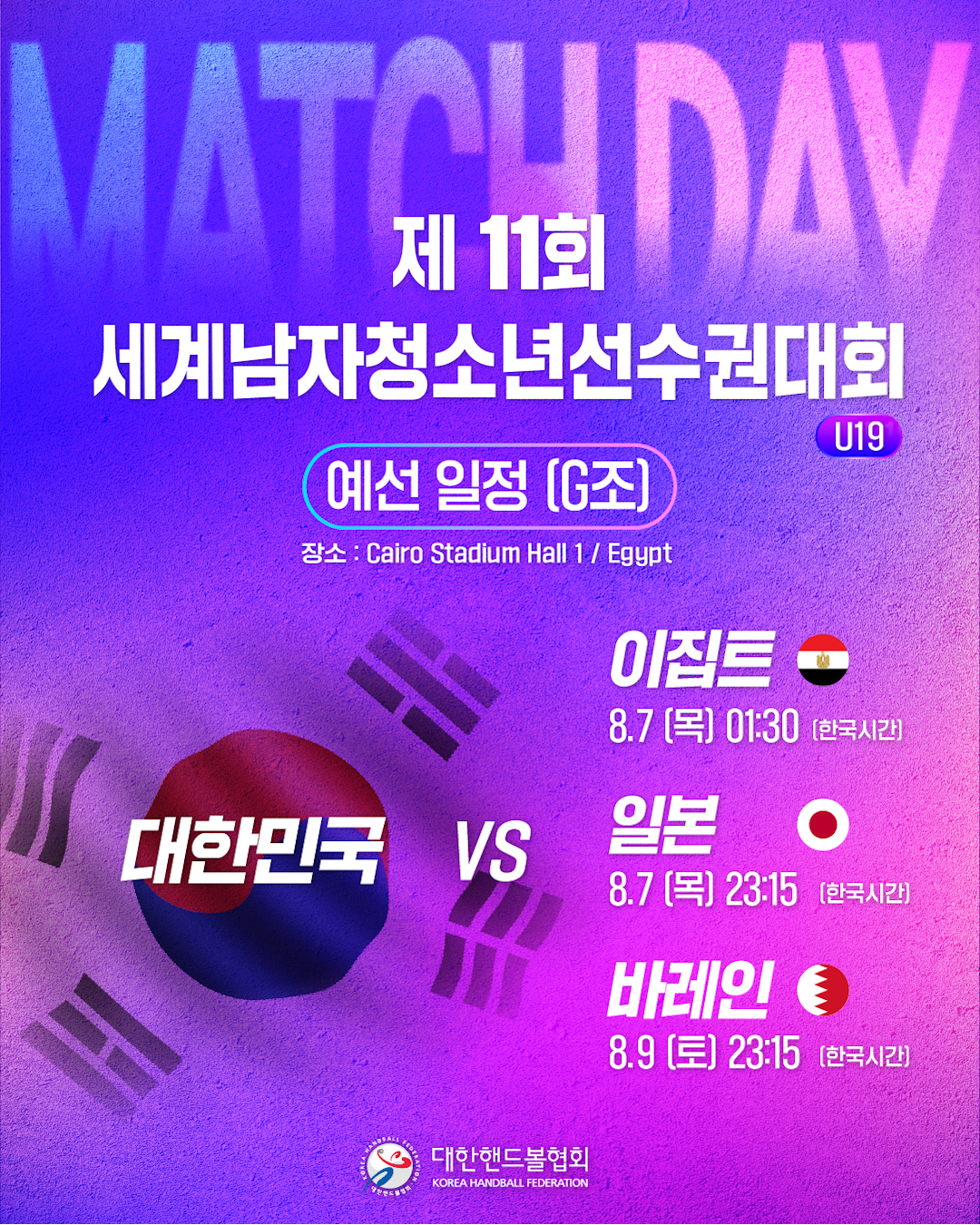 대한민국 남자청소년 대표팀은 이번 대회를 통해 국제무대 경험을 쌓으며 한국 핸드볼의 미래를 이끌 차세대 선수로 성장하는 기회를 가질 예정이다.