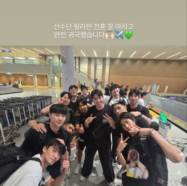 DB 구단은 2일 SNS를 통해 "필피핀 전지훈련을 마치고 인천국제공항으로 귀국했다"고 전했다. 강상재와 박인웅 등 DB 선수단은 엄지를 들어 올리거나 '손가락 브이'를 만들며 환한 표정을 지었다.