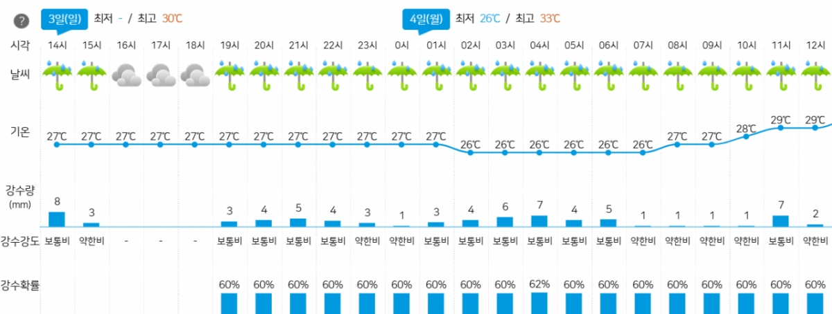 다만 관건이 있으니 비 예보다. 기상청 동네예보에 따르면 이날 광주-KIA 챔피언스필드에는 오후 2시부터 3시까지 비 예보가 있다. 양도 적지 않다. 오후 2시부터 3시까지 1시간 동안 8mm, 오후 3시부터 4시까지 1시간 동안 3mm의 강수량이 예보돼 있다. 이어 잠시 소강 상태를 보인 뒤 다시 오후 7시부터 내일(4일) 오후 7시까지 계속 비 예보가 있는 상황이다.