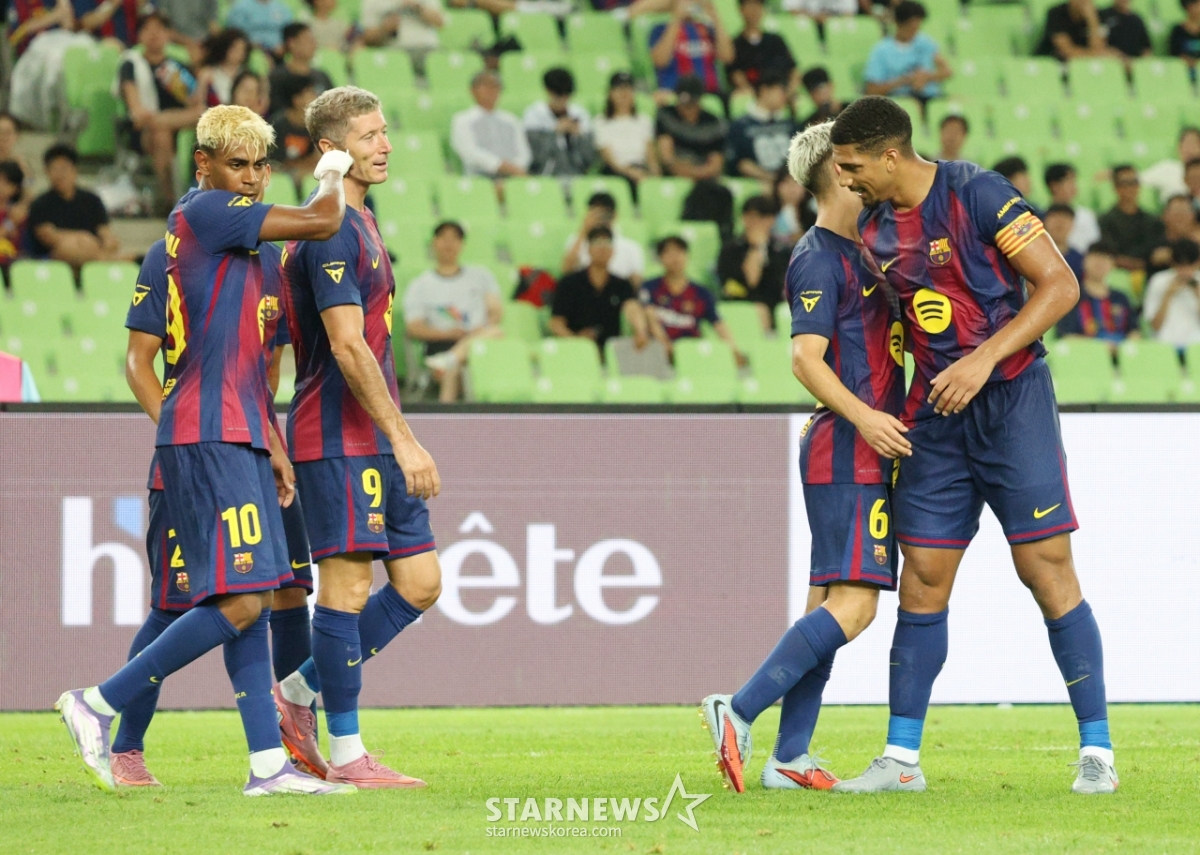 스포츠해외축구[포토] 아라우호 '세 번째 골!'발행 : 2025.08.04 ・ 22:49수정 : 2025.08.04 ・ 22:51대구=김진경 대기자'2025 FC바르셀로나 프리시즌 아시아투어' 대구FC 대 FCB 경기가 4일 대구스타디움에서 열렸다.FC 바르셀로나 아라우호(오른쪽)가 세 번째 골을 터뜨린 후 동료들과 기쁨을 나누고 있다.<저작권자 © 스타뉴스, 무단전재 및 재배포 금지>FCBFC바르셀로나야말세징요대구FC영탁추천 기사김진경 대기자기자홈좋아요 스포츠-해외축구의 인기 급상승 뉴스스포츠-해외축구의 최신 뉴스