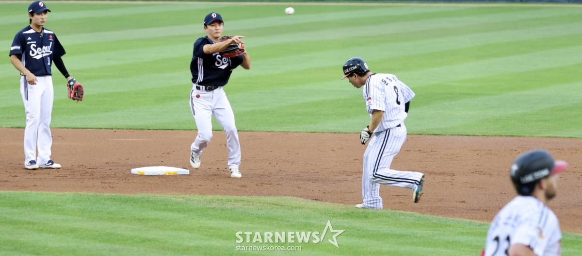 스포츠야구[포토]박계범 '오스틴 타구 병살처리'발행 : 2025.08.05 ・ 19:00잠실=강영조 선임기자후반기 첫 출전한 LG 3번타자 오스틴이 5일 잠실구장에서 열린 2025 KBO리그 LG트윈스와 두산베어스 경기 1회말 1사 1루에서 내야땅볼 치자 두산 내야진이 병살처리하고 있다. 2025.08.05.<저작권자 © 스타뉴스, 무단전재 및 재배포 금지>오스틴두산병살처리잠실트윈스추천 기사강영조 선임기자기자홈좋아요 스포츠-야구의 인기 급상승 뉴스스포츠-야구의 최신 뉴스