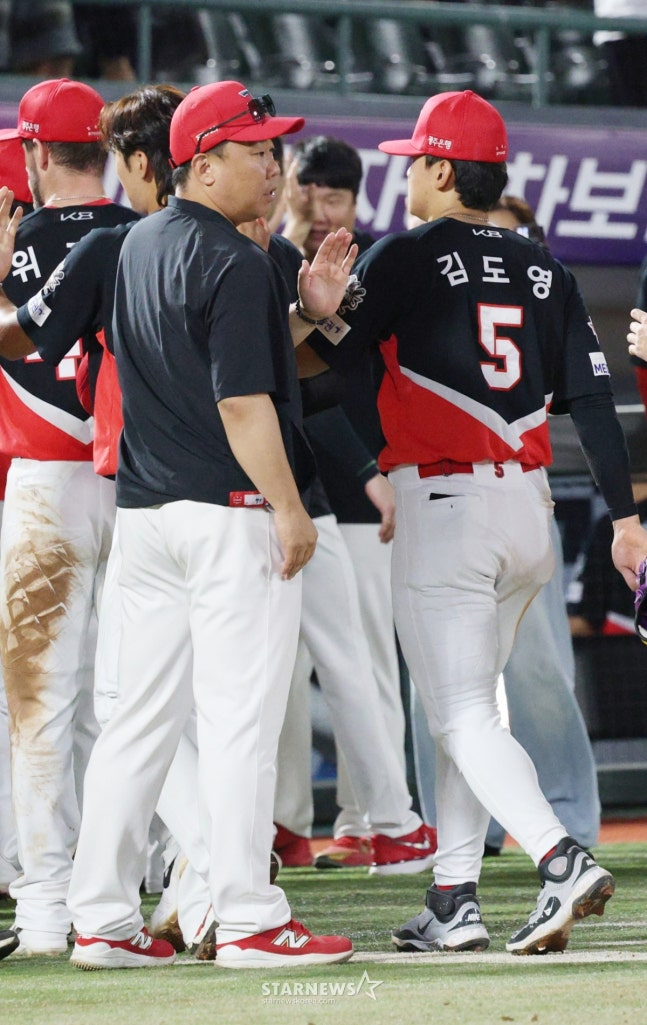 또한 이날은 햄스트링 부상에서 회복한 지난해 MVP 김도영의 실전 복귀날이었다. 그는 이날 3번 타자 겸 3루수로 선발 출전했는데, 이 감독은 "몸은 완벽하다. 이제부터는 경기 출전을 시켜야 할 것 같다"며 "(수비이닝 제한은) 그럴 수 있는 상황도 아니다"라고 했다.