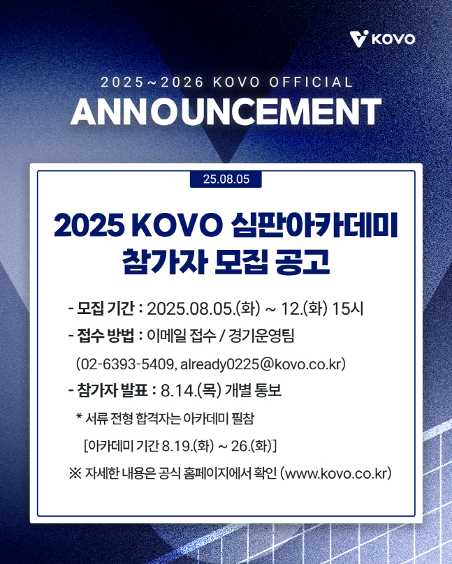 한국배구연맹이 심판 역량 강화 및 양성을 위해 2025 KOVO 심판아카데미 참가자를 모집한다.